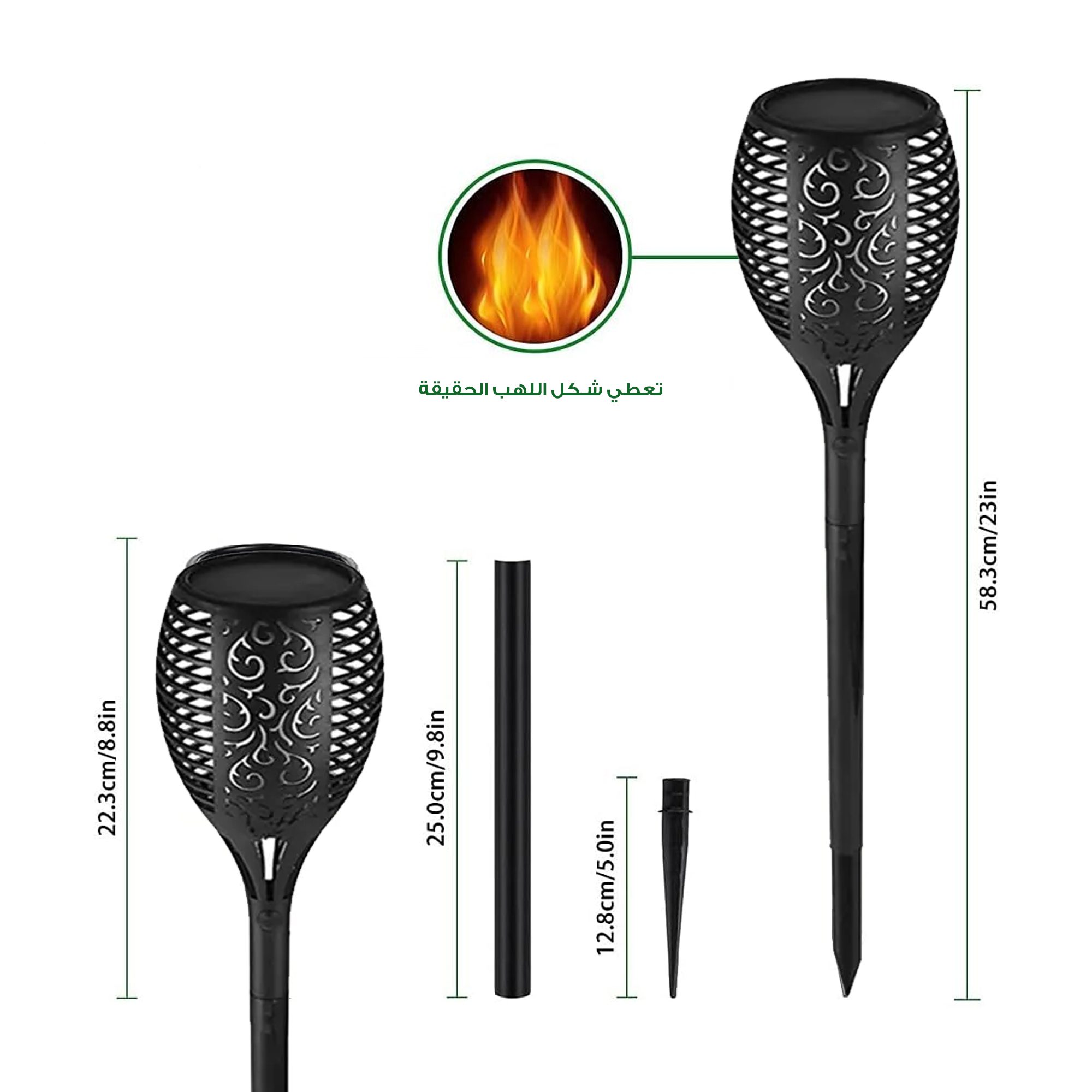 إضاءة تشبه اللهب تعطي جو رايق للمجالس والحدائق.