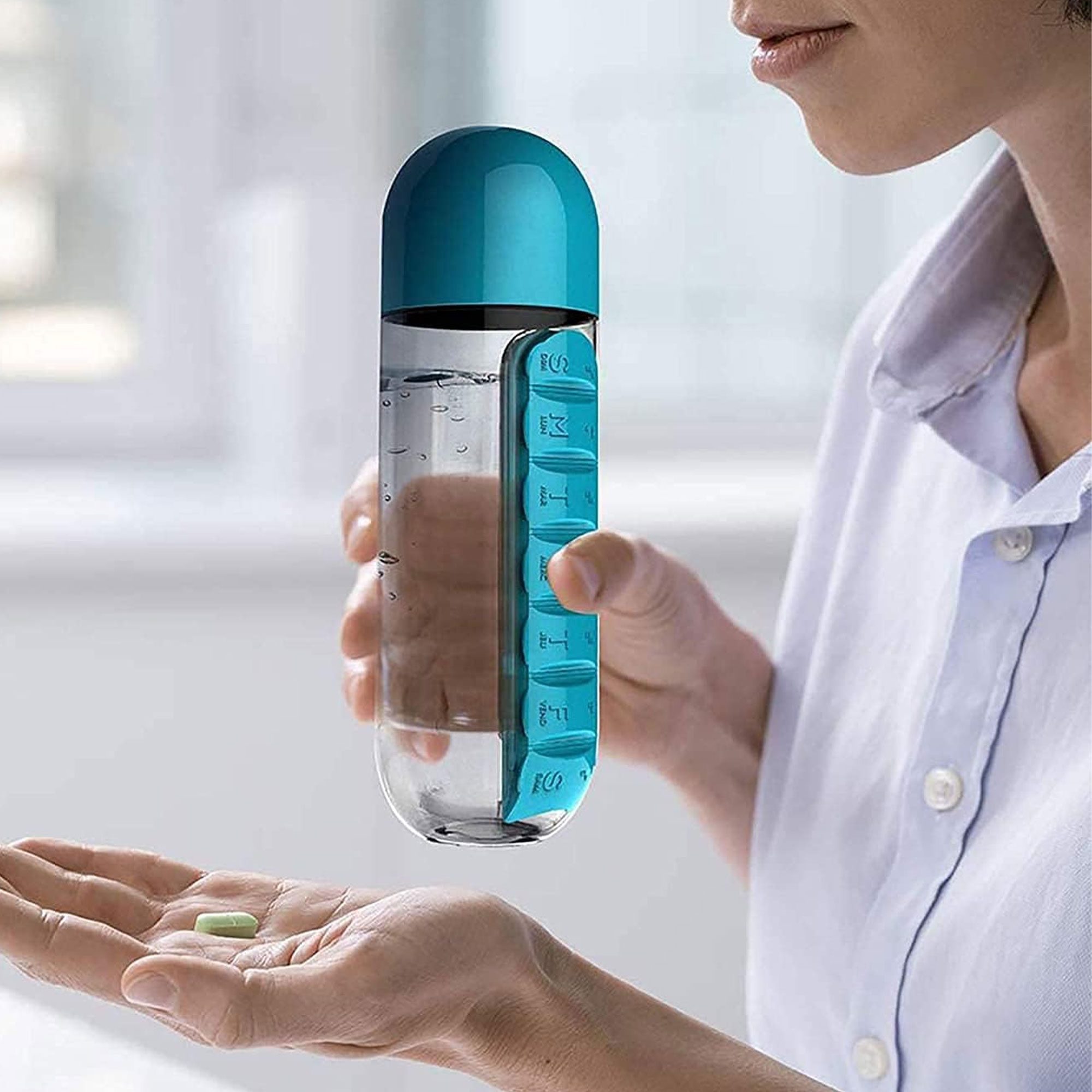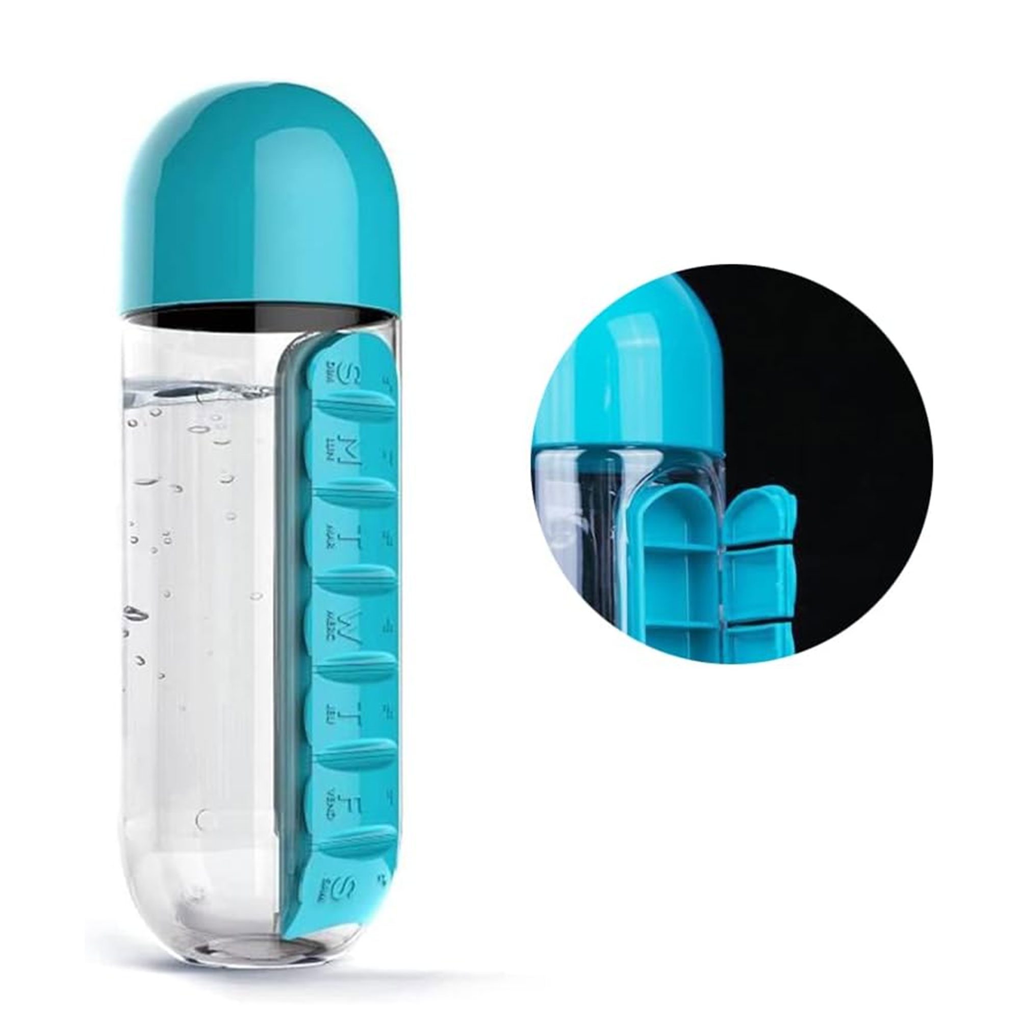زجاجة مياه مع حقيبة منظم حبوب دواء