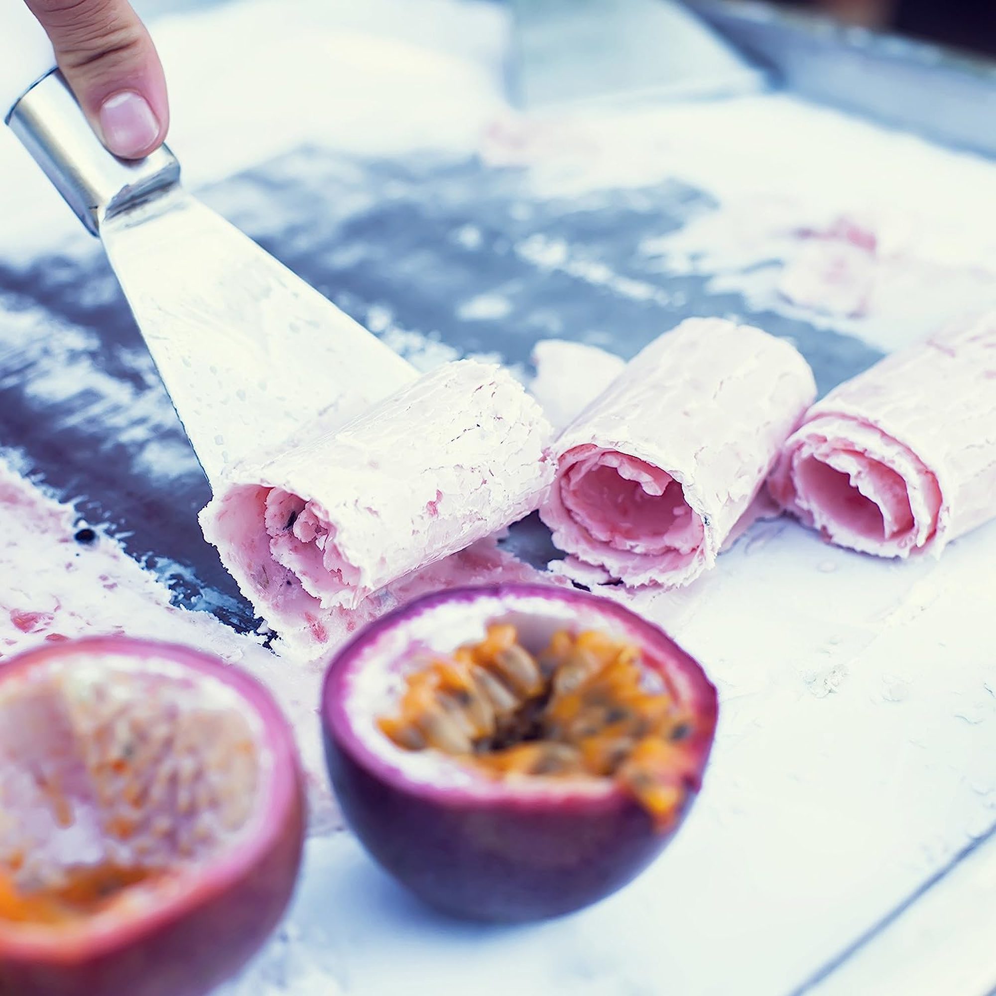 – مع 2 كاشطات طبق صانع الآيس كريم متعدد الوظائف، صانع أيس كريم ملفوف محلي الصنع زبادي مثلج جيلاتو.