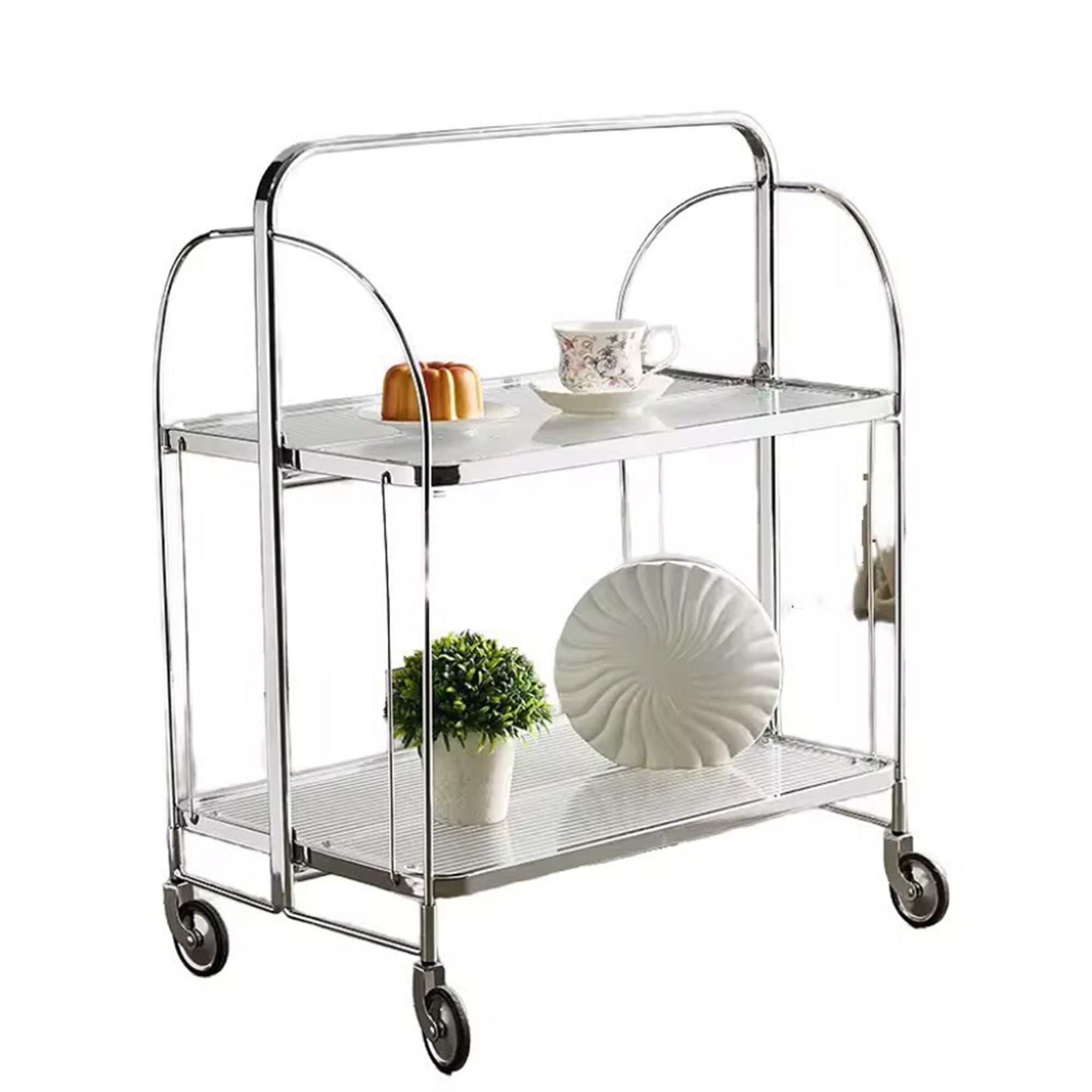 عربية تقديم متحركة قابلة للطي فضي