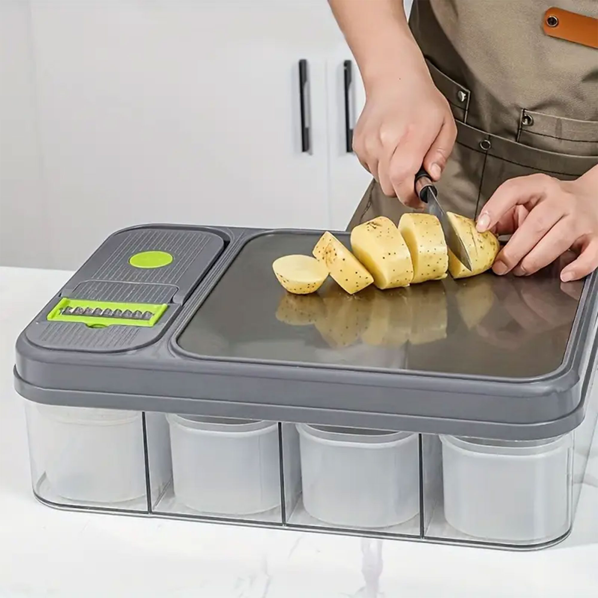 تقطع الخضار وتنزل بالحاوية، بدون ما توسخ.