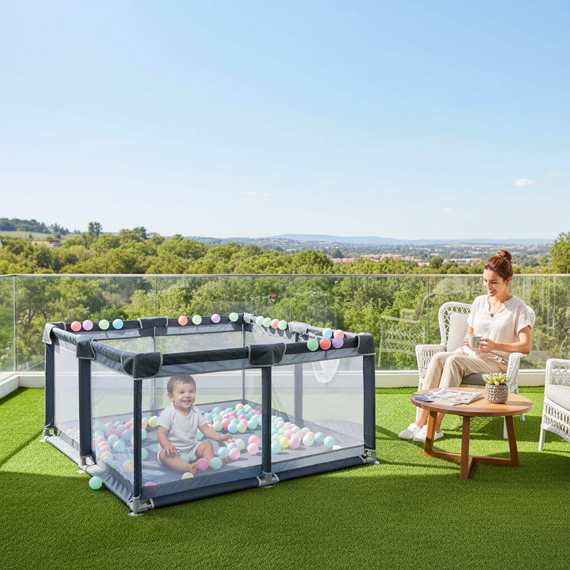 – مساحة كبيرة 200×180 سم للأطفال للعب بحرية