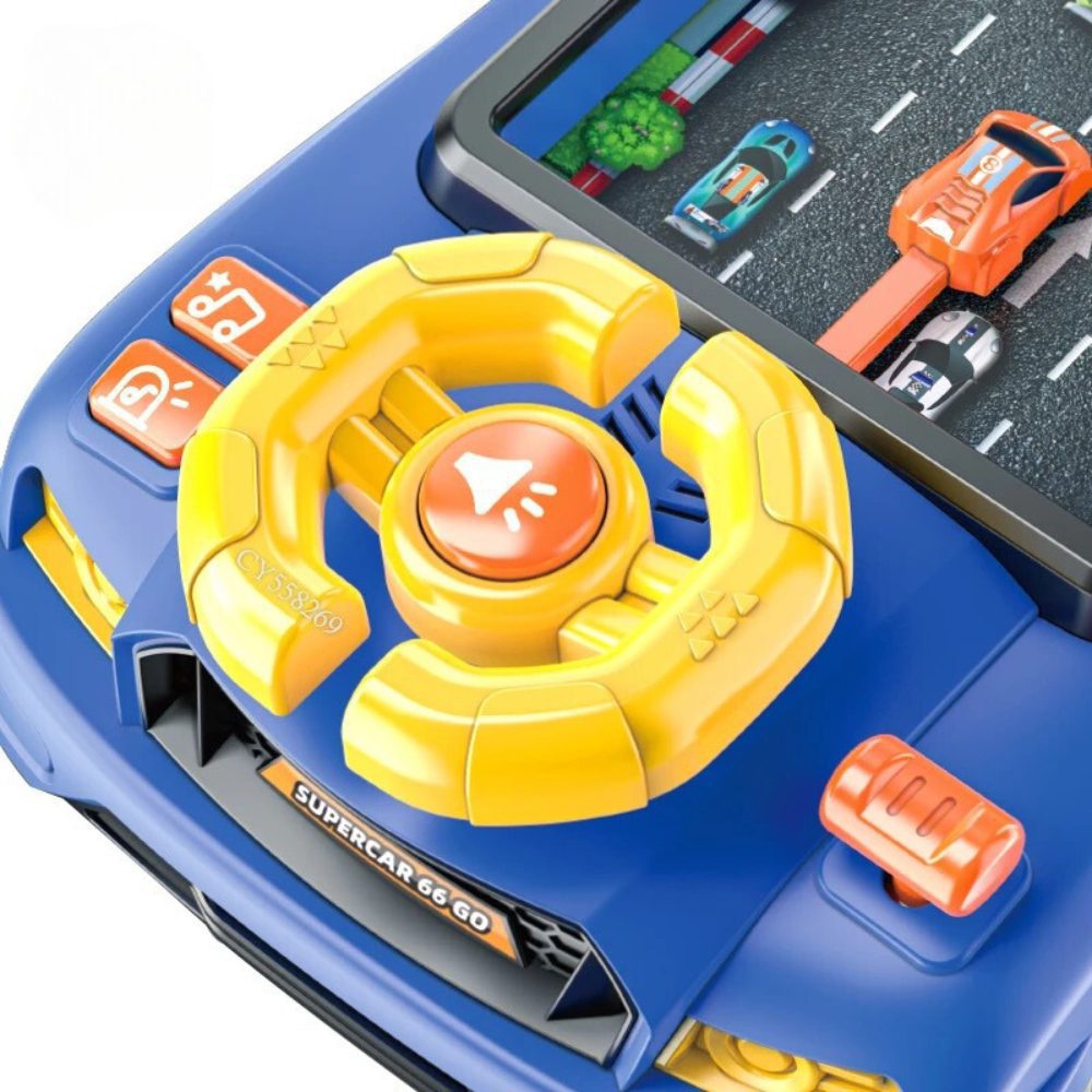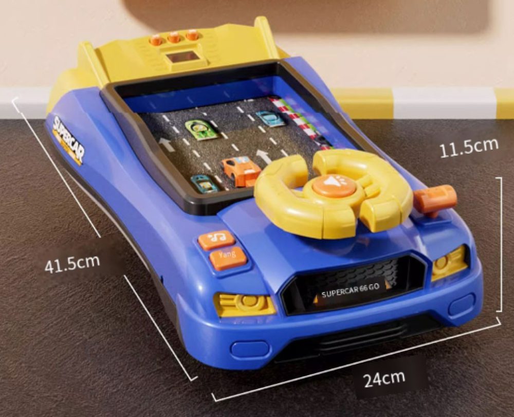 تصميم سيارة سباق أزرق جذاب يخلي اللعب ممتع.