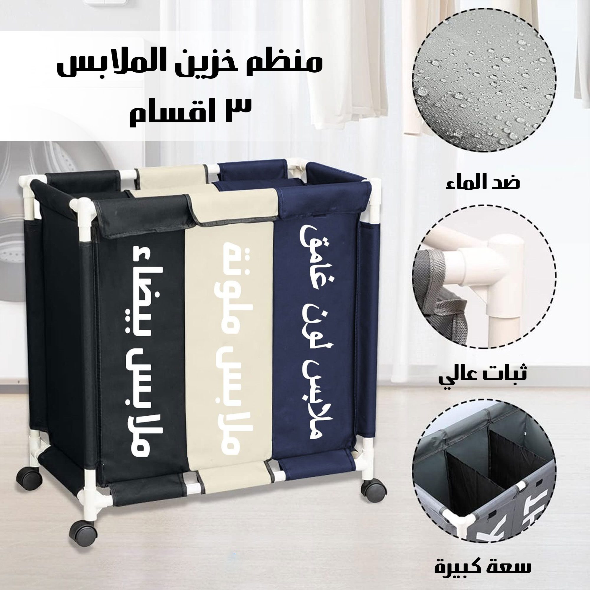 النوع: سلة غسيل بعجلات مع غطاء وقسمين